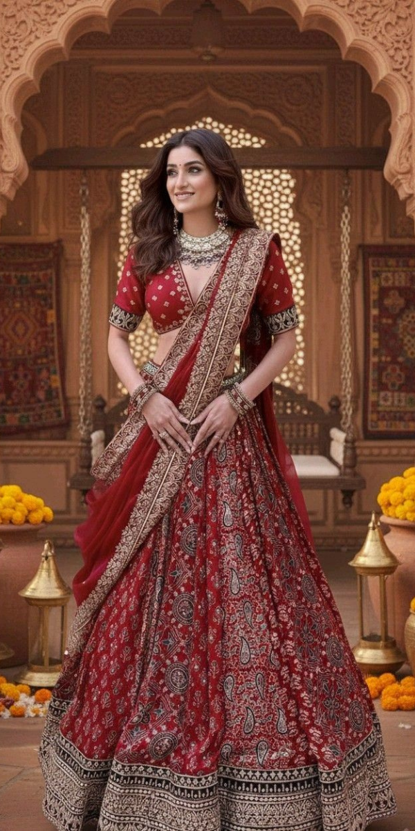 Royal Scarlet Zari Embroidered Bridal Lehenga Set